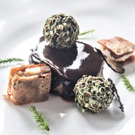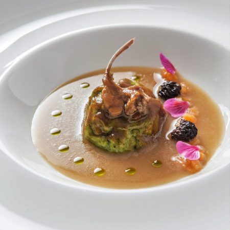 In 2012, chef Andreu Genestra opened a restaurant at the Hotel Perdi Son Jaumell on the Spanish island of Mallorca. The location – an impressive 18th-century building surrounded by a wealth of organic vegetable gardens, vines and coops – directly inspires the kitchen. Chef Genestra presents the local cuisine using a combination of culture, tradition, creativity, fresh ingredients and uncompromising quality. This recipe earned him a Michelin star (2015) and two stars of La Guia Repsol, Spain’s renowned culinary guide.